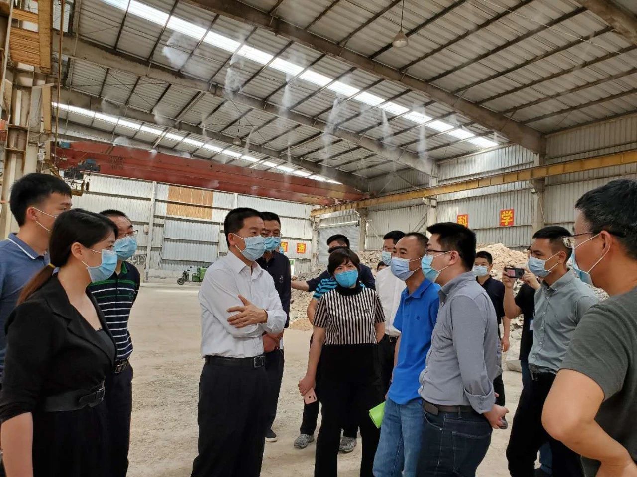 市城管和綜合執(zhí)法局楊雷副局長等一行人蒞臨華威裝修廢棄物資源化利用試點項目考察